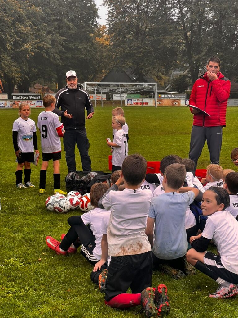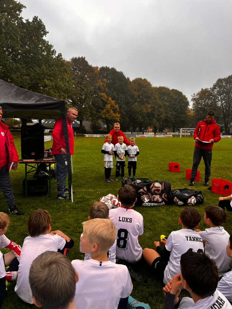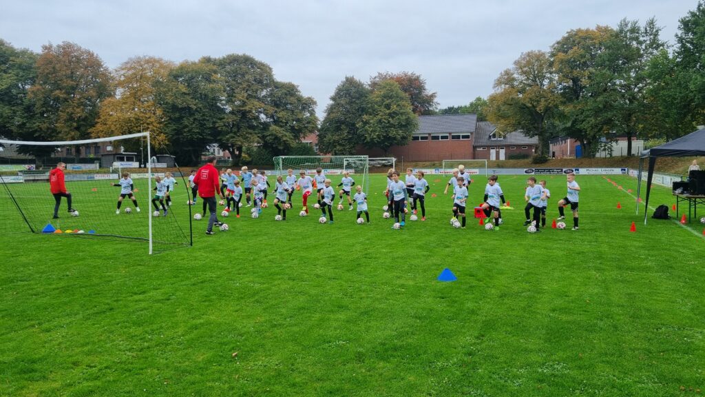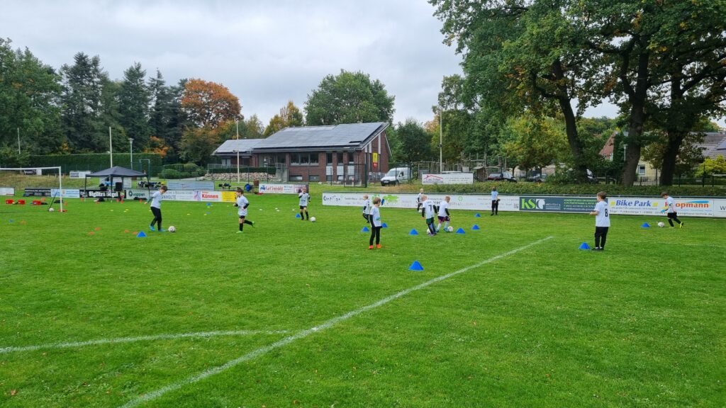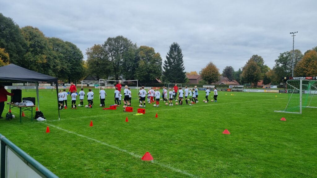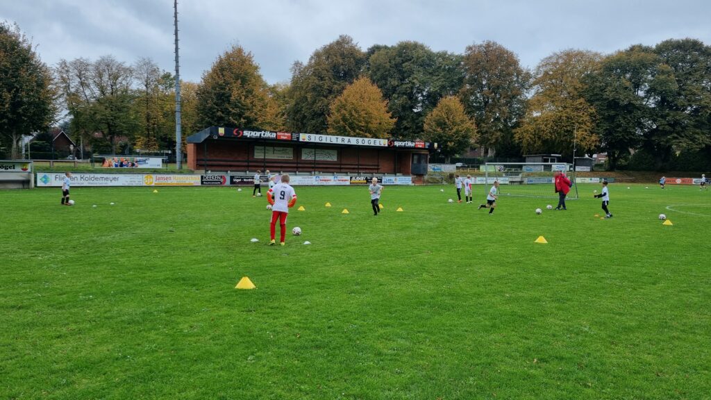 Am 11.-12.10.2025 fand ein Fußballcamp in Sögel gemeinsam mit der Fussballfabrik statt. 35 Kinder nahmen teil und hatten zwei Tage lang unheimlich viel Spaß. Unter dem Motto Training. Lernen. Leben. wurden viele Übungen gemacht, auch kleine Wettbewerbe wie der Dribbelkönig oder Passmeister fanden statt. Neben den sportlichen Dingen wurde auch viel über das Miteinander auf dem Platz, Respekt und Toleranz gesprochen und den Kindern die Wichtigkeit dieser Werte im Sport, aber auch im Leben vermittelt.