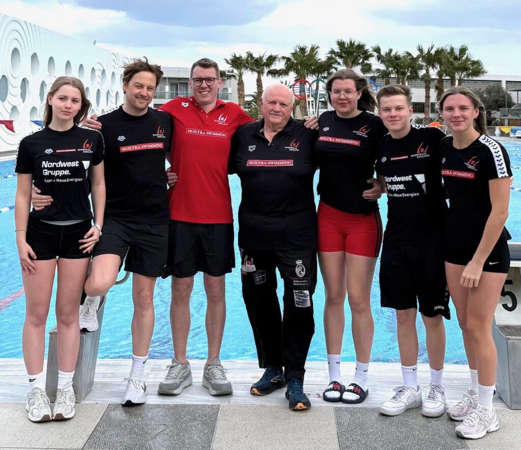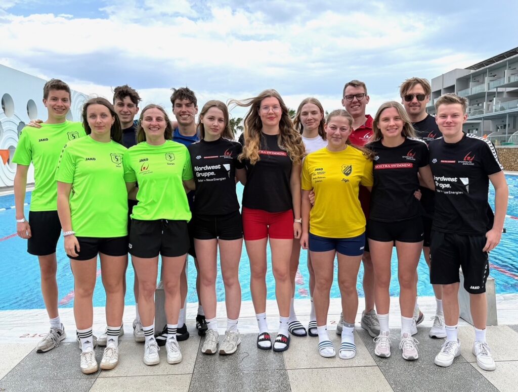 Auch für unsere Sigiltra-Leistungsträger wie Lotta Schmees, Jevste Vredenborg, Franziska Robbers und Hermann Schmees (Masters) sowie einige EL-Kaderschwimmer aus Emsbüren, Lingen, Dalum und Meppen, die sich auf die Landes- und Norddeutsche sowie Deutsche Meisterschaften vorbereiten, konnten das erneut in Gesellschaft mit vielen gleichgesinnten Sportlern aus Hannover, Aachen, Hagen, Mainz, Düsseldorf und vor allem Wiesbaden tun. Das Trainingscamp unter südlicher Sonne, das auch vom Förderkreis Schwimmen und der Sporthilfe Emsland unterstützt wird, bot auch dem EL-Sporthilfe-Kader, die im Kreisstützpunkt zusammen mit den Sögelern sozusagen „eine Einheit bilden“ besondere Möglichkeiten. Insbesondere auch für Laura Vehns (SV Concordia Emsbüren), Jan Richtering (SV Blau-Weiß Lingen), Sarah Dall (Wasserfreunde Dalum) und dem Meppener David Schnieders sowie separat Marius Hollen und Samuel Sibum, die mit dem SV Haren vor Ort waren, ließ das Camp kaum Wünsche an sportlichen und auch kulturellen Möglichkeiten im Wasser und an Land, an Unterkunft und Verpflegung übrig. „Essen einfach lecker“ – „kurze Wege vom Zimmer zum Becken“ – „relativ“ warmes Wasser – wenn die so nicht gewohnten Wetterschwankungen gewesen wären. Das 10-Bahnen-Freibecken, in der Regel – wenn kein Sturm – nachts abgedeckt bot optimalere Wassertemperaturen von bis zu rund 26 Grad C. Gut ausgestattete Kraft- und Gymnastikräume, weitere diverse Sportanlagen konnten ergänzend helfen, die 14 Tage trotz recht kühler und zwischendurch windiger Tage optimal zu nutzen. Zusätzlich stand „Gott sei Dank“ teilweise ein 25-m-Hallenbad bei Sturm und Regen zum Ausweichen zur Verfügung. Bei rund vier bis fünf Schwimmkilometer pro Abschnitt sprangen nach 21 Sektionen zum Schluss fast 90 Kilometer Schwimmleistung unterschiedlicher Intensität heraus. Regelmäßiges Dehnen, Gymnastik und 8 Krafteinheiten rundeten das sportliche Programm ab – nicht zuletzt auch durch das Fachwissen der angehende Dalumer Sportlehrerin und Absolventin der Sporthochschule Köln, Sarah Dall, die auch interessante Teile des Wasserprogramms gestaltete. Aber auch durch unsere Schwimmerin Lotta Schmees konnten wir aus ihrem alternativen Trainingsplan-Fundus aus ihrem Aufenthalt in der englischen schwimmsportlichen Elite-Schule Mount Kelly schöpfen.