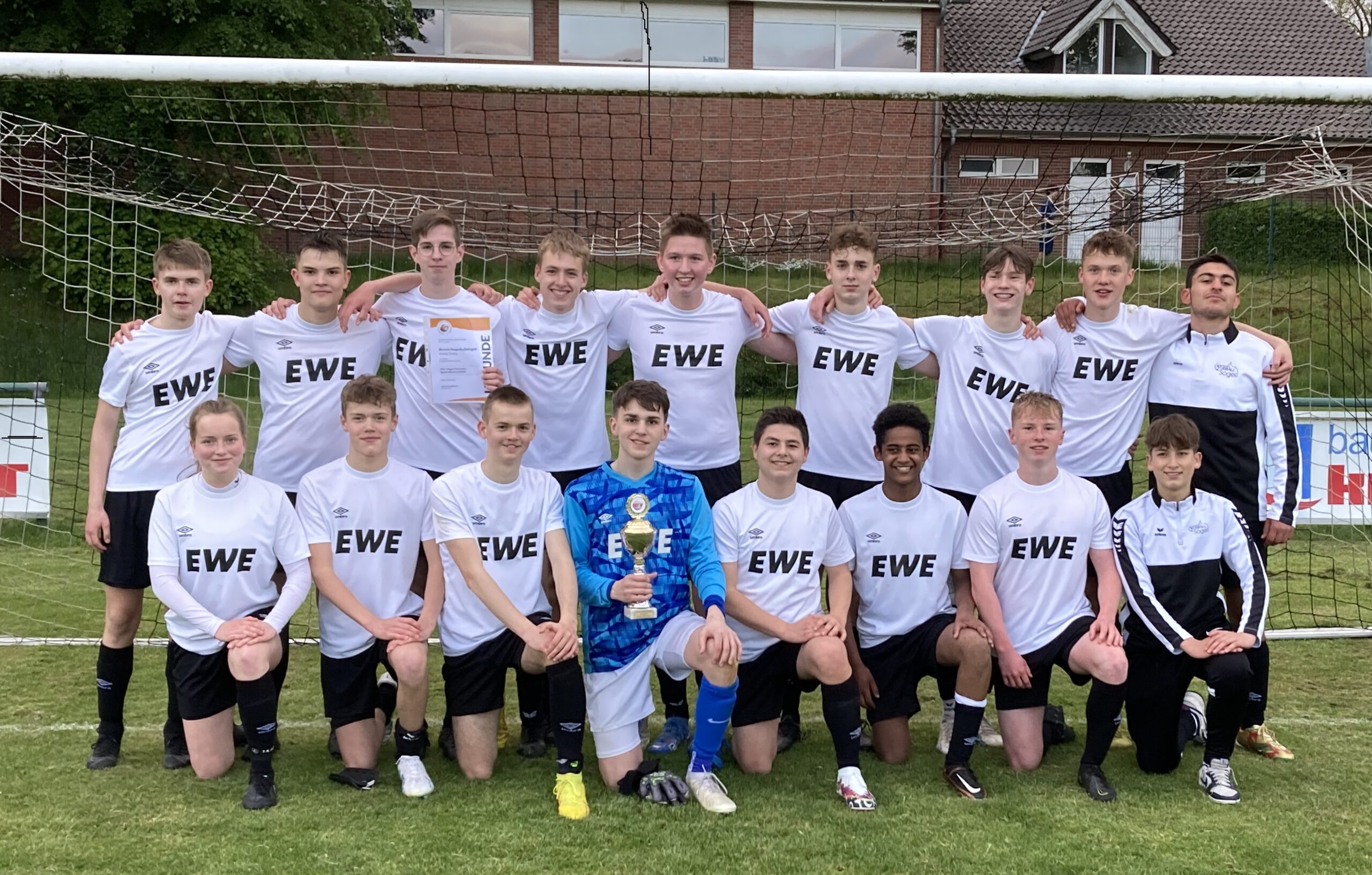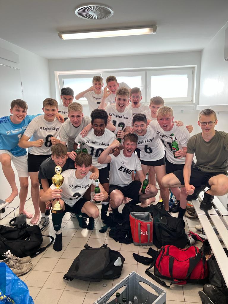 Die B1- Jugend der JSG Sögel schwimmt in dieser Saison auf einer Erfolgswelle. Nach dem Gewinn der Herbstmeisterschaft folgte nun auch der Erfolg im Kreispokal Emsland/Nord. Durch einen hochverdienten 5:0 Erfolg gegen die U-16 des SC Blau-Weiß Papenburg vor einer Rekordkulisse von 150 Zuschauern errang man gleichzeitig auch die Qualifikation für das Turnier auf Emslandebene. Dieses findet am 10.06. in Heede statt, wo man auf die Sieger der Bereiche Mitte (JSG Eisten/Hüven/Berßen/Lähden/Holte) und Süd (Darme/Schepsdorf) trifft. Beeindruckt zeigten sich Spieler und Zuschauer von der Kulisse, die durch eigens kreierte Fangesänge und Trommeln untermalt wurden, an einem schönen Maiabend im...