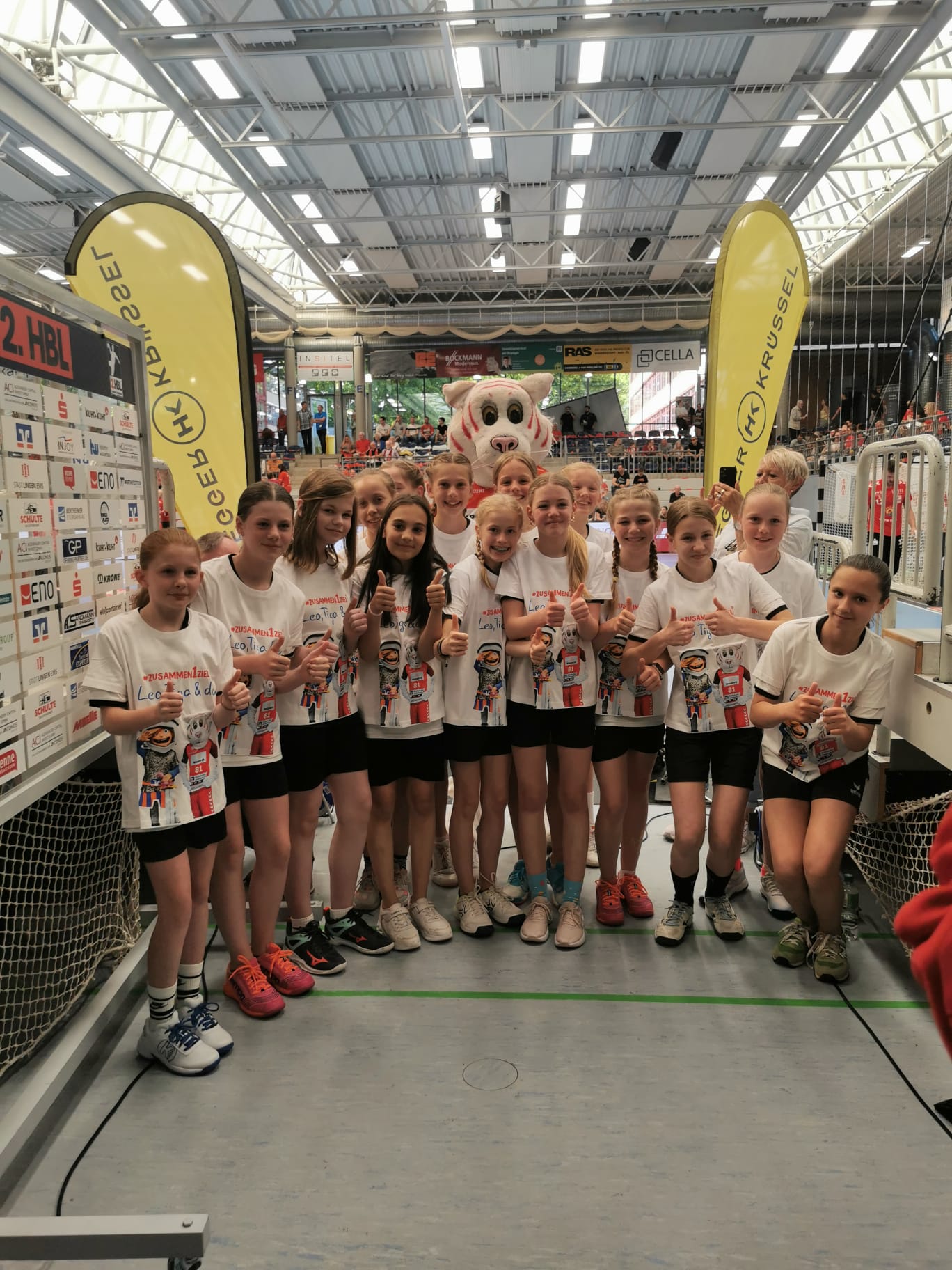 Handballerinnen des SV Sigiltra Sögel als Einlaufkinder bei der HSG Nordhorn-Lingen